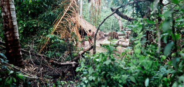 Индейцы ябарана повалили здесь несколько исполинских деревьев, отчего образовалась поляна диаметром в десять-пятнадцать метров. Тут же совершенно без присмотра ходили оставленные хозяевами и куры ябарана, к которым хоти не проявляют ни малейшего интереса. Точно так же хоти не проявляли интереса ни к созревшим плодам на деревьях ябарана, ни к прочему их оставленному хозяйству. Все необходимое для жизни хоти приносили из леса и ловили в реке.