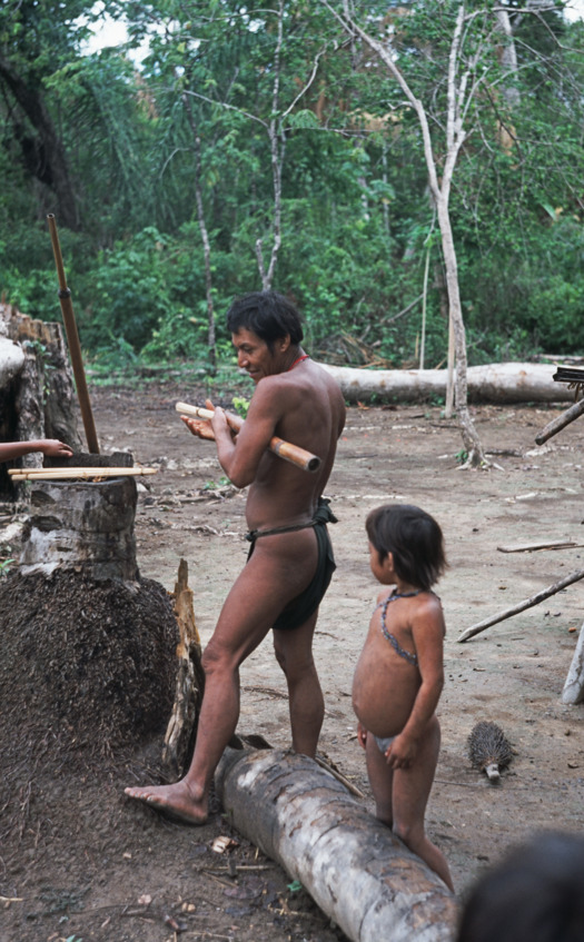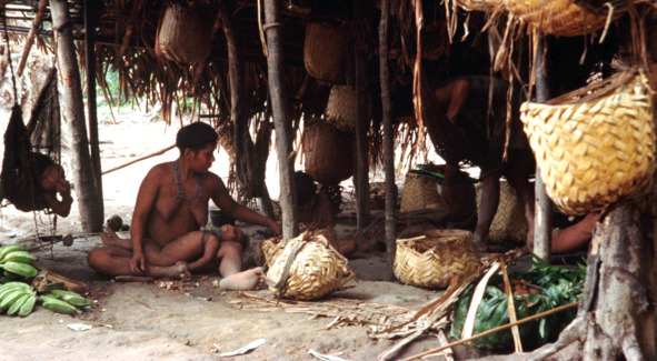 Завязывается разговор с хозяевами ябарана. Рядом, прислоненная к стене, стоит длинная духовая трубка хозяина – мужчины средних лет, как выясняется, он купил ее у индейцев екуана. На земле лежат стрелы для духовой трубки. Молодые родственники убирают с глаз долой оружие, заботливо укладывая его на низко свисающую кровлю крыши.