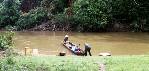 Идем дальше вверх по реке, проплываем очередную деревню ябарана. Плывем мимо, не останавливаемся. На шум мотора выбегает почти все население деревни – чумазые дети, мужчины, женщины. И вдруг вижу за ними одинокую белую женщину, блондинку, печально глядящую нам вслед.