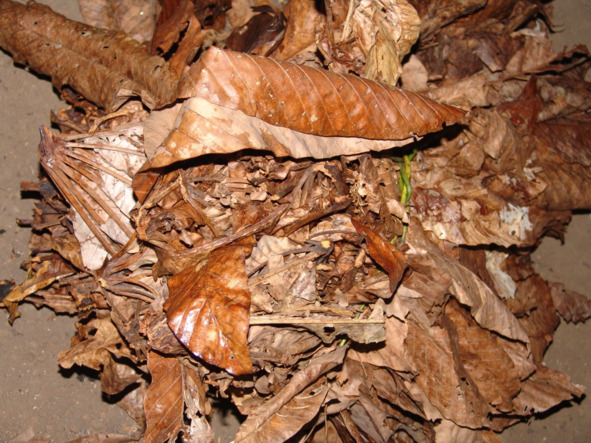 Высушенные листья Cecropia peltata, используемые для приготовления маании