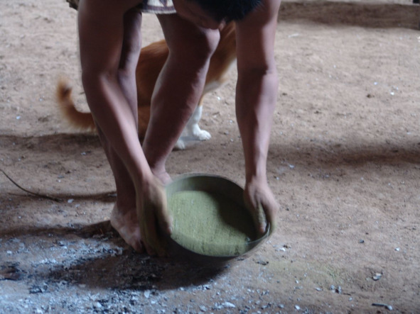 По традиционным для бора законам гостеприимства, подразумевающим, что вас приглашают зайти в малоку, быть гостем, индейцы предлагают нам порошок из листьев коки (Erythroxylum coca) – маании.