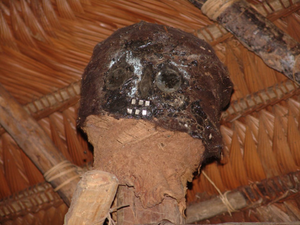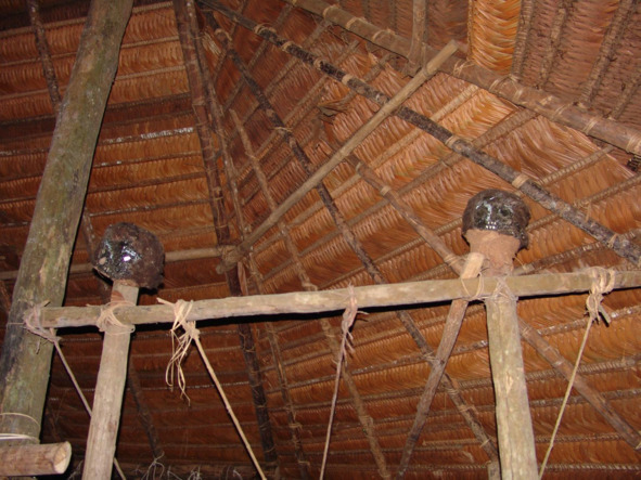 – Изначально было два высших существа – одно из них живет в барабанах кууму, второе – в опорных столбах, поддерживающих малоку, – отвечает она.