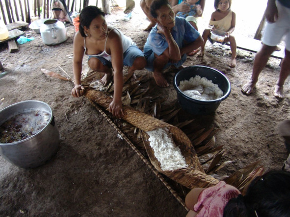 Маниок – основной продукт питания индейцев Амазонии и Оринокии. Перед употреблением в пищу из клубней маниока необходимо удалить содержащиеся в нем токсины. Для этого бора заворачивают растертую маниоковую массу в длинную циновку.