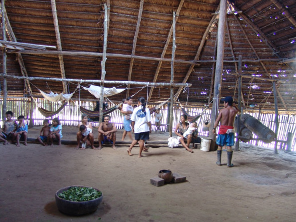 В составе родного рода он пришел на эти земли несколько десятилетий назад. Агуахе тут очень понравилось, и они сразу решили заложить здесь новую малоку. Малока, в которой мы сейчас находимся, как раз и есть то первое строение.