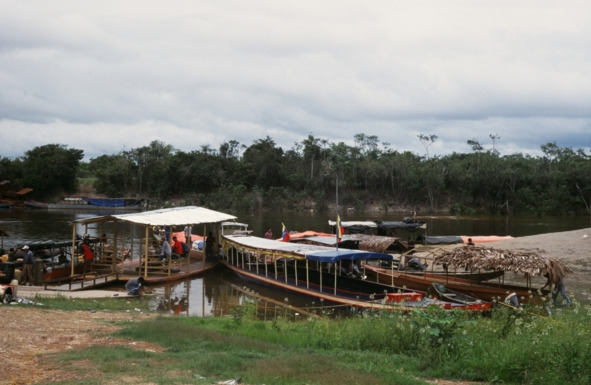 Лодка с колумбийскими золотоискателями, покинувшая деревню индейцев пиароа немного раньше нас, пришвартована тут же у берега, рядом с военным постом. Похоже, у этих людей проблемы, как минимум с официальными разрешениями для посещения отдаленных территорий венесуэльской Амазонии. Одна из женщин, находящаяся на ее борту, идентифицированная Акселем как проститутка, когда мы проплываем мимо, старательно укрывает от нас свое лицо платком.