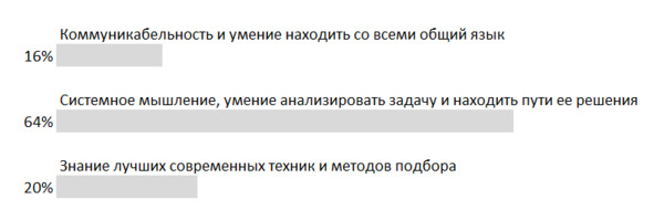 Голосование на одном из интернет ресурсов, посвященному вопросам рекрутинга: «Какое качество рекрутера важнее для успешного выполнения его работы?»