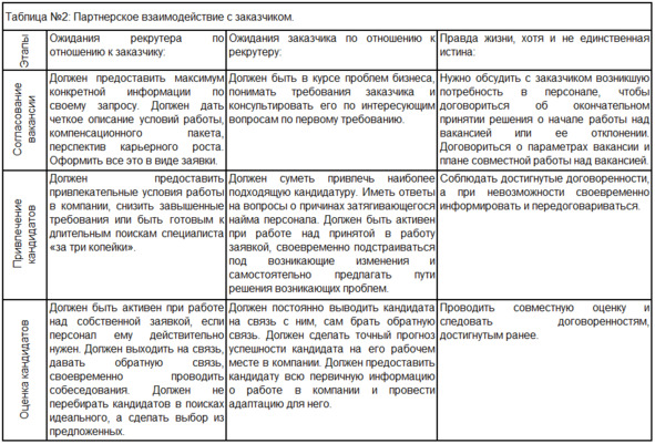 Специалист по отбору, занимающий партнерскую позицию, уважает мнение клиента и не боится высказывать свое мнение, как решить его вопрос. Это важно, чтобы сделать запрос более объективным и отвечающим интересам компании.