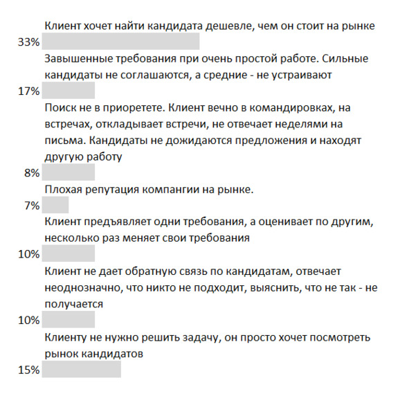 Голосование на одном из интернет ресурсов, посвященному вопросам рекрутинга: «Какие сложности чаще всего встречаете вы при взаимодействии с заказчиком?»