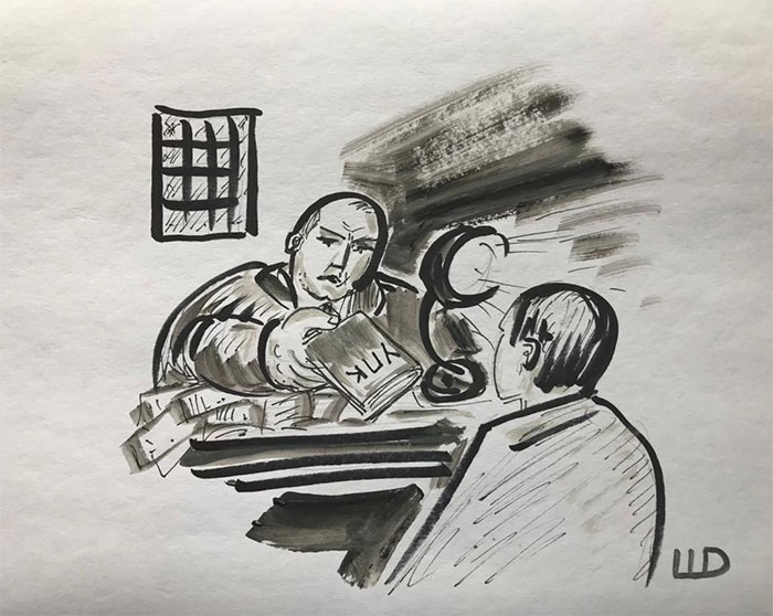 Он медленно достал откуда-то и положил на стол Уголовно-процессуальный кодекс и уставился на меня своим механическим, неморгающим взглядом.