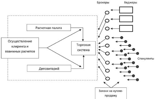 Для того чтобы биржа эффективно выполняла свои функции, минимизируя системные риски при заключении сделок, на ней должны функционировать: четкая торговая система, обеспечивающая фиксацию и заключение сделок; эффективная служба определения и выполнения взаимных обязательств участников торгов и биржи; депозитарно-расчетная (депозитарно-клиринговая) палата.