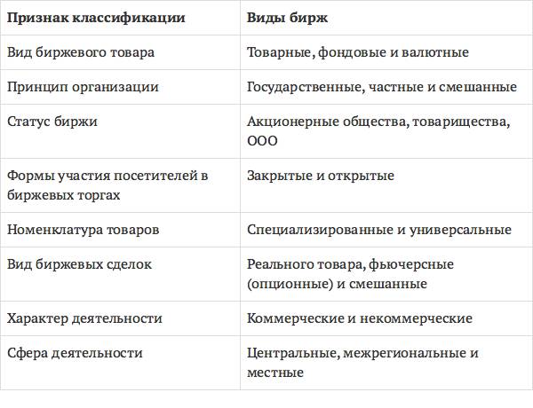 К биржевым товарам принято относить стандартизированные товары массового производства, обладающие качественной однородностью, сопоставимостью базисных характеристик и взаимозаменяемостью партий. На биржах торгуют не только товарами, но и контрактами. Являясь механизмом, выявляющим реальное соотношение спроса и предложения, биржа может определять подлинную стоимость товара. В современной биржевой торговле значительное место занимают первичные сырьевые товары, такие, как зерновые и технические сельскохозяйственные культуры, нефтепродукты, лес, уголь, металлы. Биржевые цены на эти товары чутко реагируют на конъюнктуру рынка.