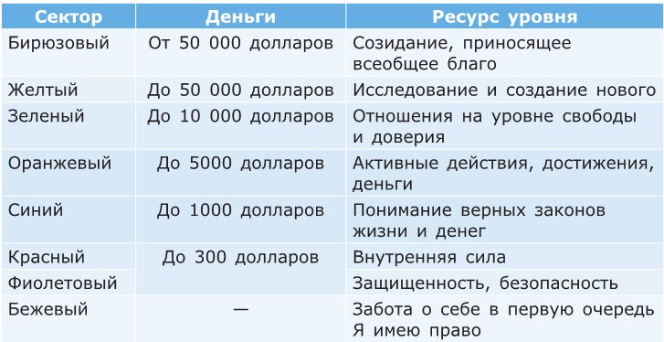 А в развитии отдельной личности как раз на оранжевом секторе появляются деньги. Это период, когда мы уже выросли, выучились и пошли зарабатывать: развивать карьеру или бизнес, расти профессионально, реализовывать свои идеи. От того, в каком объеме и качестве человек получил важные для себя ресурсы на предыдущих уровнях, зависит его способность действовать и достигать успеха.