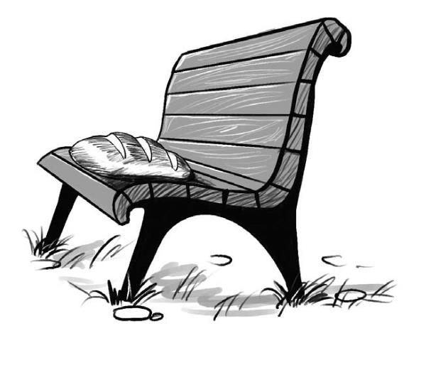 Смотрим, а там на скамейке, на самом видном месте, лежит батон хлеба.