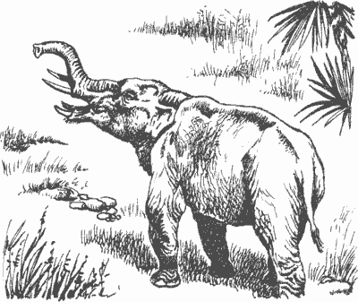 В то же время по тропке спускались на водопой четыре мастодонта. Завидев этих гигантов, бегемот мигом отправился восвояси.
