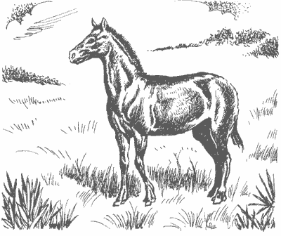 Неожиданно к ним подбежал зверь, похожий на лошадь, только ростом поменьше; на каждой ноге у него было по три пальца: средний побольше, а два задних – маленькие, и на каждом пальце по копытцу. Это был гиппарион, предок нашей лошади.