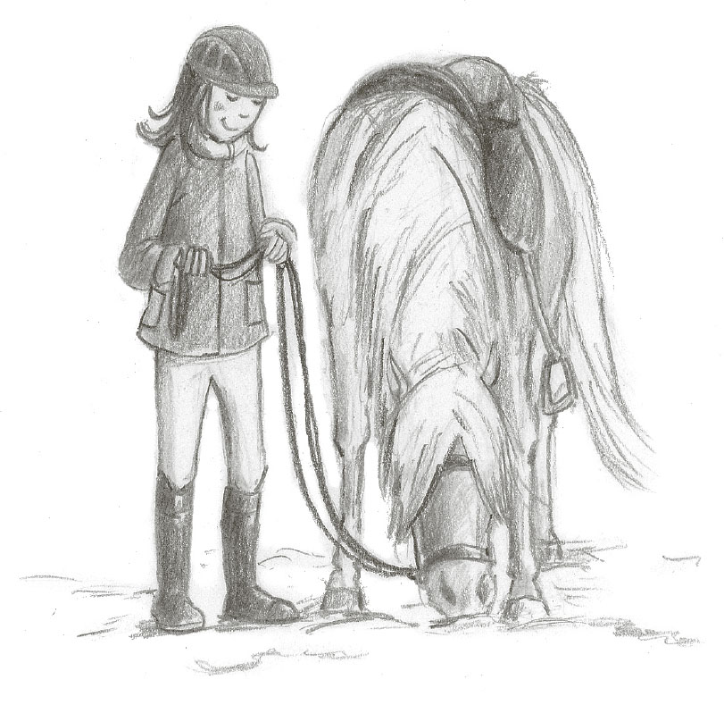 „Warte!“, rief Lordi ihr nach. „Ich zeig euch noch schnell, wo ihr das Putzzeug, Trensen und die Sättel findet. Und dann gibt es natürlich noch eine gratis Reitstunde für euch.“