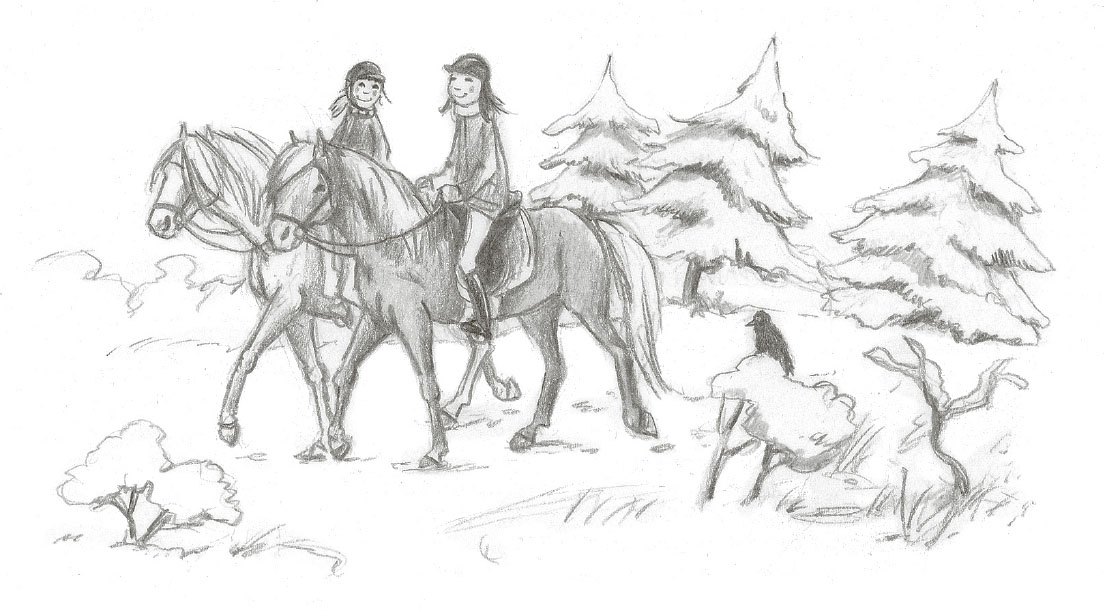 Einen Moment lang zögerte Janne noch. Doch dann nickte sie. „Okay, aber wählt nicht gleich eine zu weite Strecke aus. Wir wollen ja nicht, dass ihr euch verirrt. Dazu ist es nämlich echt zu kalt. Am besten reitet ihr in den Wald. Da ist es etwas geschützter.“