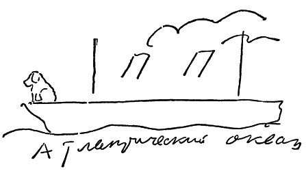 Мой «Эспань» – пароходик ничего. Русских не обнаружено пока. Едут мужчины в подтяжках и с поясом сразу (оне испанцы) и какие-то женщины в огромных серьгах (оне испанки). Бегают две коротких собачки. Японские, но рыженькие, обе одинаковые.