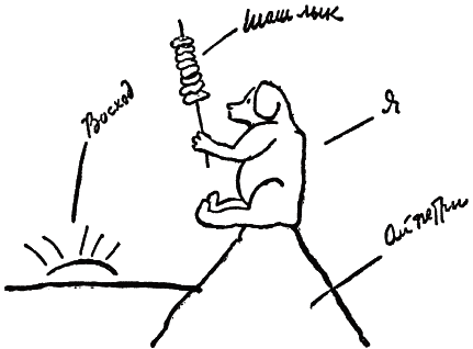 Во-первых, от Краснодара до самого Баку ехал с нами в поезде большой престарелый обезьян. Обезьян сидел в окне и все время жевал. Не дожевавши, часто останавливался и серьезно и долго смотрел на горы, удивленно, безнадежно и грустно, как Левин после проигрыша.