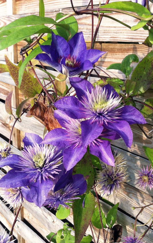 Больше всего мне понравился участок. Вдоль забора росли плетистые розы. В тот год они цвели пышно, доросли до высоты забора, и скрыли его розово-белым облаком. На кустах жимолости созревали крепенькие ягоды. Дальше обвивал подпорки в виде арки фиолетовый клематис. От него я долго не могла оторвать взгляд.