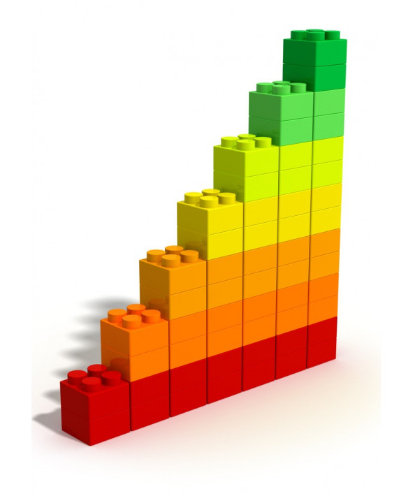 Name all the colors of the steps. I will help you. Repeat after me, please. (We repeat all the colors and figures.)