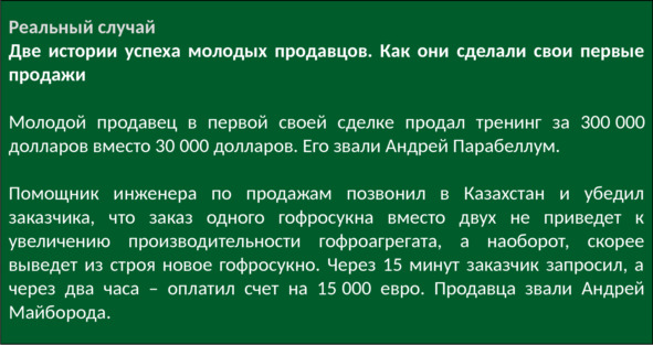 Наглядно разницу между продавцами группы А и группы Б демонстрирует конкретный кейс сделки с Клиентом.