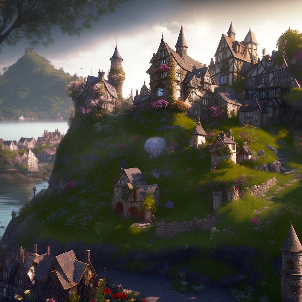 Мы приземляемся подальше от городка. Дрейк сразу прячется, принимая вид скалы, почти весь погружаясь под воду. А мы с лошадкой топаем вдоль берега, через небольшой лесок, в направлении поселения.