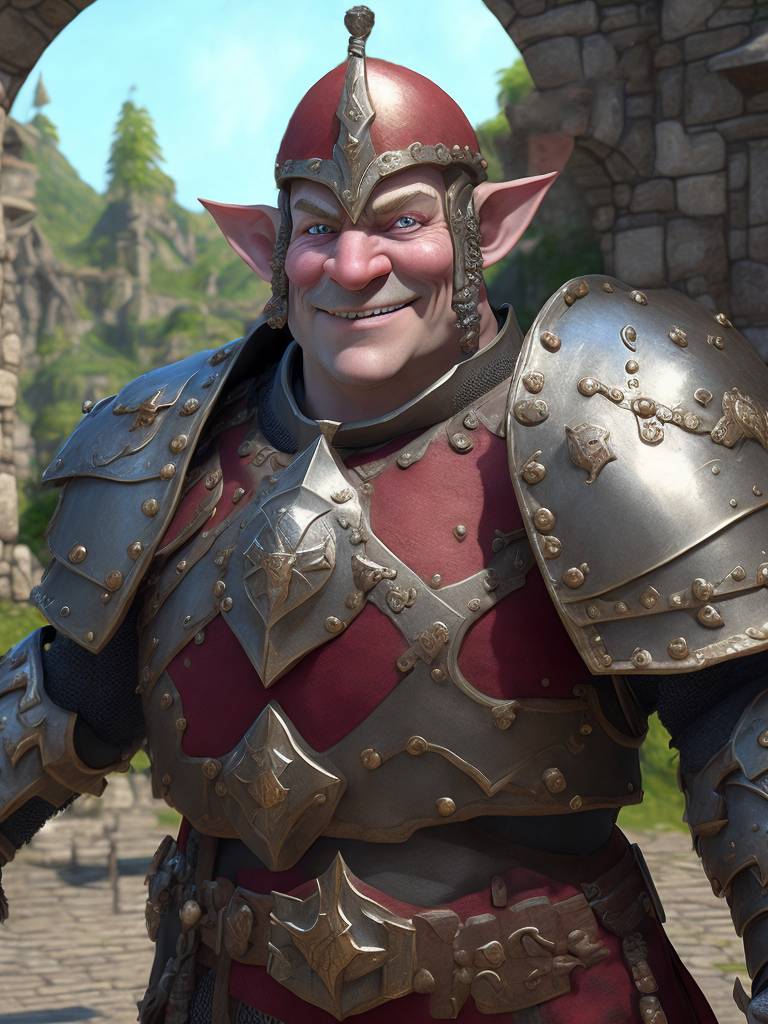 Топаем к воротам. Нам навстречу выходит красноносый стражник с алебардой наперевес. Из-под шлема торчат острые эльфийские уши. Подозрительно оглядывает нас и гавкает: