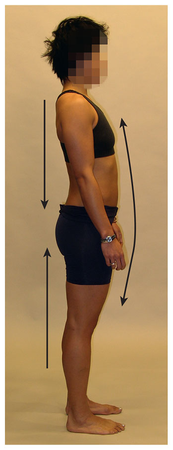 Рис. 4.27. «Военный» тип осанки характеризуется укороченной и зажатой ПЗЛ, особенно в ее средней части, и удлиненной ПФЛ – на тех ее участках, где необходимо компенсировать изменения в ПЗЛ