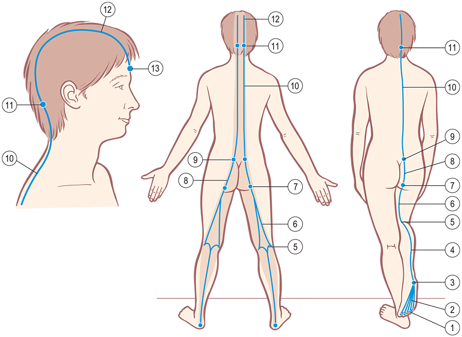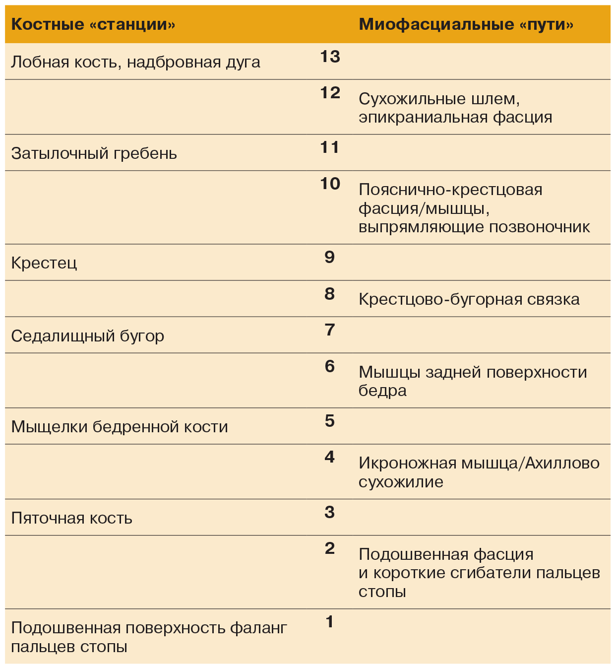Поверхностная Задняя Линия: миофасциальные «пути» и костные «станции» (Рис. 3.2)
