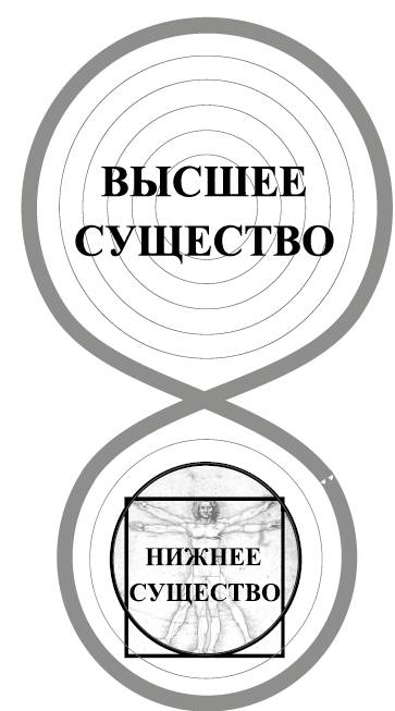 Чтобы понять, как и почему человеческие существа отделили себя от своих учителей, нам нужно тщательно рассмотреть всё ваше существо. Я опишу это общими словами, которые понятны большинству существ, населяющих Землю. Я уже говорил, что всё имеет Альфа– и Омега-аспект, и это относится к вашему собственному существу. Можно сравнить ваше целое существо с фигурой «восемь»: