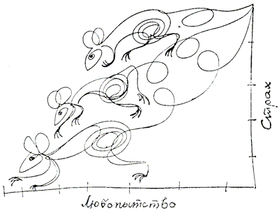 Диаграмма зависимости между страхом и любопытством: чем меньше мышь боится, тем больше познает.