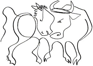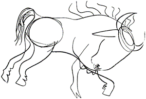 Насколько же трудно даже в рисунке объединить два вида – быка и лошадь…