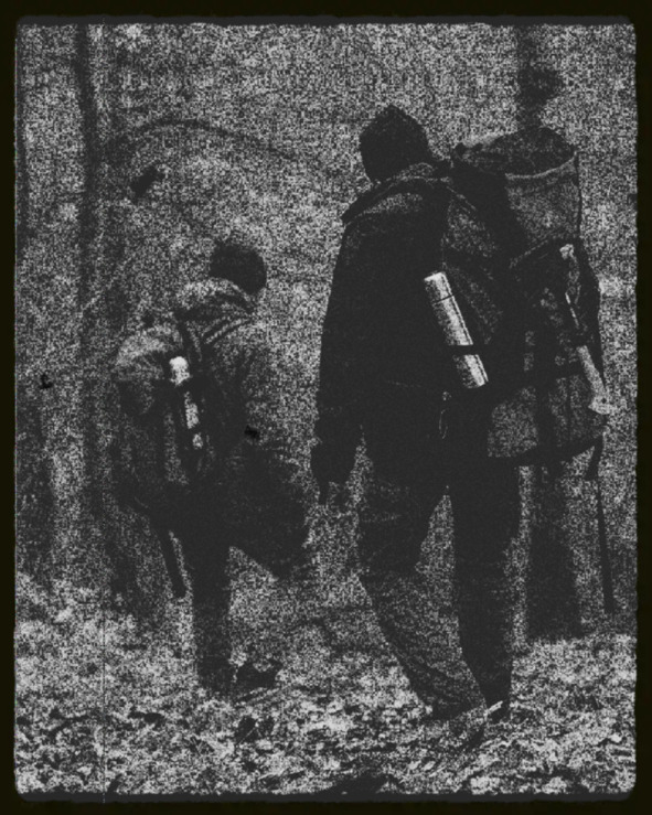 «Каблучек» немного сопротивлялся, но все же смог выкарабкаться. Я проехал немного и развернул его в направлении дома. Мы вышли, скинули служебную форму, и надели гражданские «Шмотки». Засунули документы в бардачек. Затем переодели обувь на сапоги, накинули рюкзаки и пошли спускаться дальше, вниз по дороге.