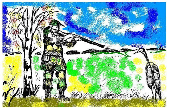 …«Надо бежать… Надо бежать…» – инстинкт подсказывал журавлю план действий, но его уже окружали люди, все плотнее сжимая кольцо, из которого не выбраться. И тогда, собрав последние силы, он, полными злобы и ненависти глазами, пошел навстречу своему врагу – тому, кто держал в руках смертоносное железо.