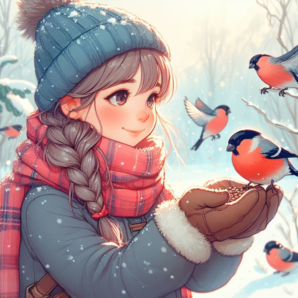 Снегирь крыльями взмахнул и к подружкам упорхнул.