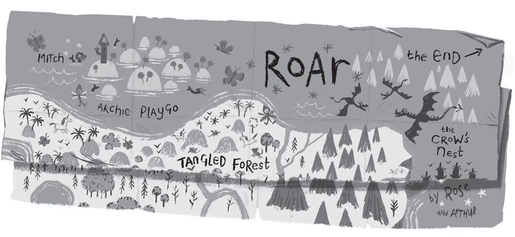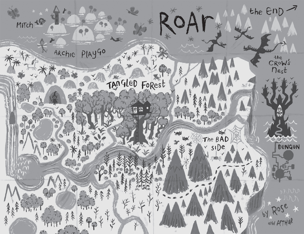 I smile. Roar isn’t a real place. It’s a game that Rose and I used to play, one that was so good, we drew a map of it.
