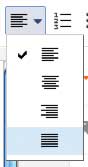7 El siguiente bloque de herramientas lo utilizaremos más adelante. Pulse ahora Ctrl.+A para seleccionar todo el artículo y, pulse ahora el botón desplegable Alineación, el primero del grupo que le sigue.