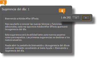 5.El panel de la derecha, Sugerencia del día, le ofrece, cada vez que inicie la aplicación, una sugerencia que busca ayudarle a sacarme máximo provecho a la aplicación.