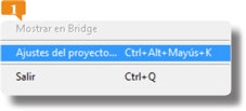 1.En estos momentos tiene abierto en pantalla un proyecto nuevo. Para modificar su configuración, pulse en la opción Archivo de la Barra de menús, que es la barra de opciones que esta justo debajo de la barra de título de la interfaz, y seleccione la opción Ajustes de proyecto.