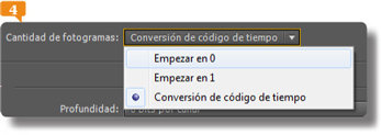 5.Puede escoger si el código de tiempo comenzará en 0, en 1 o si se convertirá a Código de tiempo.