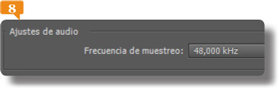 10.Los ajustes de audio se refieren a la calidad de la salida pero no afectan el material original. Aquí seleccione la opción 48,000 kHz para utilizar en este caso el estándar para la edición profesional para televisión