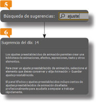 6.Se muestra la siguiente sugerencia. También puede buscar sugerencias sobre temas específicos. Pulse en el campo Búsqueda de sugerencias e introduzca la palabra ajuste.
