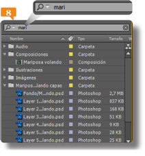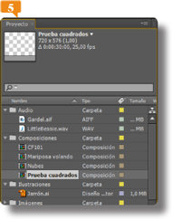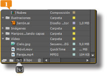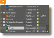 11.Finalmente cree una última carpeta llamada Composiciones y arrastre hasta ella las composiciones Mariposas volando y Nubes.