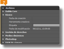 16.En el panel Metadatos despliegue el contenido del apartado Básico para comprobar que sus contenidos se han reducido y luego cierre el panel pulsando en su botón de aspa.