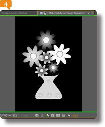 6.Puede ver la composición en un nuevo panel de Línea de tiempo. Como está vacía, el visor Composición sólo muestra una pantalla negra. Pulse en la imagen Jarrón y arrástrela hasta el centro del visor.