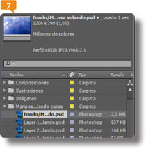 14.También de ese modo se despliega el contenido de la carpeta. Seleccione con un clic la capa Fondo.psd.