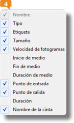 5.De este modo puede reorganizar las columnas a su gusto. Despliegue el menú del panel Proyecto y seleccione la opción Columnas.