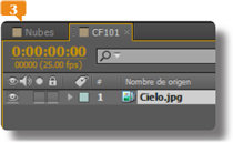 2.En el panel Proyecto se ha creado la nueva composición llamada CF101