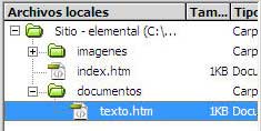 8 En el panel Archivos, haga doble clic sobre el icono de la página texto.htm para abrirla.